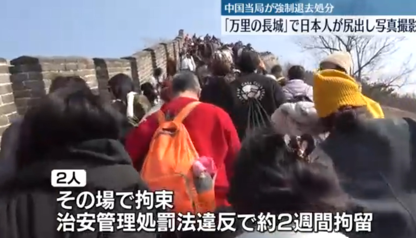 報道稱,當時涉事日本男子在長城上脱下褲子露出屁股,讓同行女子拍照。二人當場被抓,因涉嫌違反治安管理處罰法,受到行政拘留兩週左右的處罰。