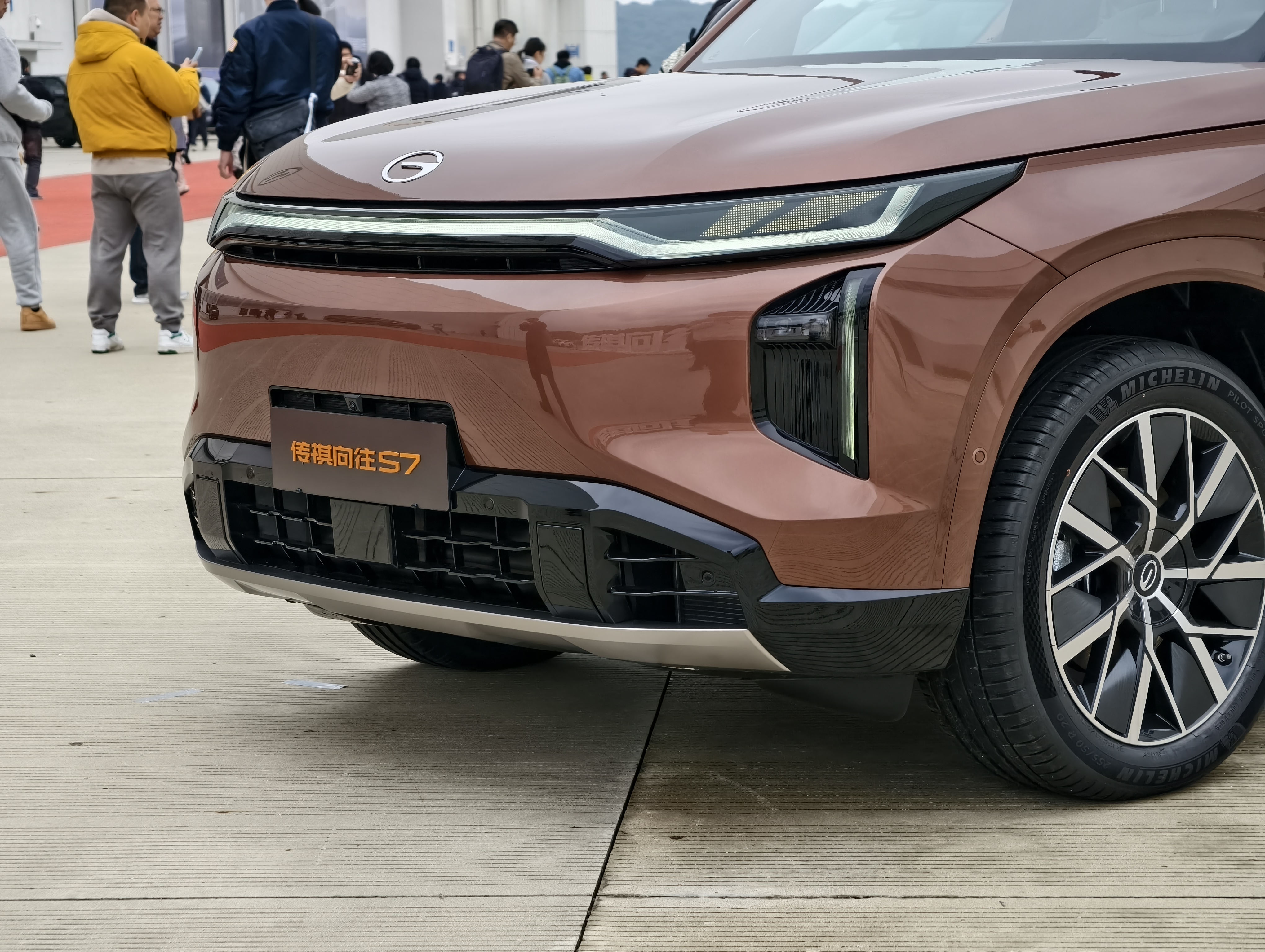 在外觀設計上,傳祺嚮往S7採用了全新設計語言“藏鋒於潤”,融合圓潤曲面與鋭利稜線,新車呈現出“中正大氣”的視覺效果。