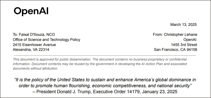 但在DeepSeek“低成本高效能”的持續衝擊下,OpenAI實在是裝不下去了。當地時間3月13日,該公司向白宮科學技術政策辦公室提交政策提案,對DeepSeek極盡誣衊之詞,渲染“中美競爭”與“中國威脅”,炒作所謂“數據安全”“知識產權”“國家補貼”“國家安全”等一系列陳詞濫調。