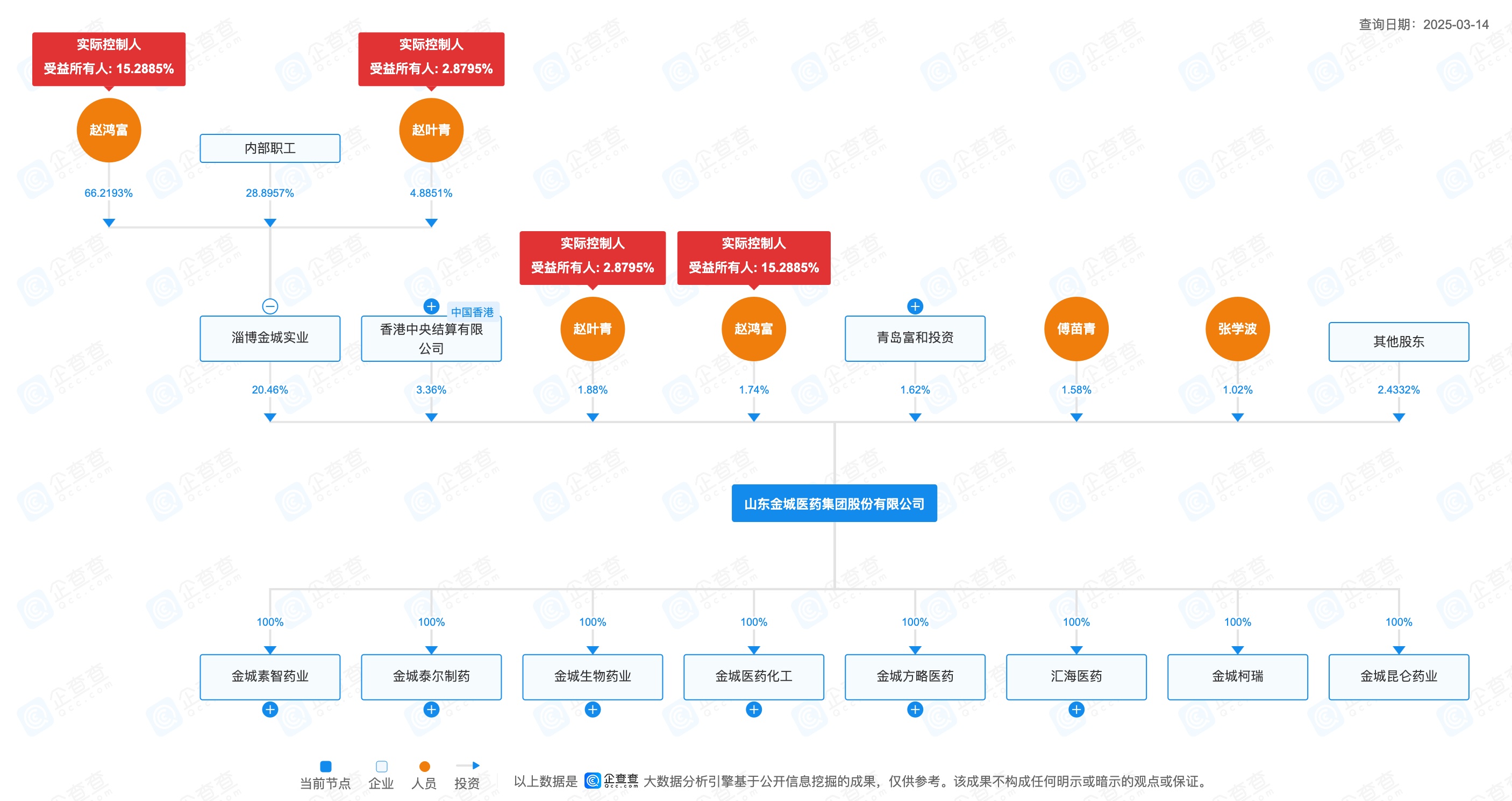 公司公告稱此次減持是為了“支持研發”,然而在趙葉青被立案調查的背景下,這一説法顯得蒼白無力。從公司的股權結構來看,趙鴻富和趙葉青父子通過淄博金城實業投資股份有限公司間接持股20.46%,並分別直接持股1.88%和2.52%,他們是公司的實際控制人,對公司的決策和運營具有絕對的控制權。