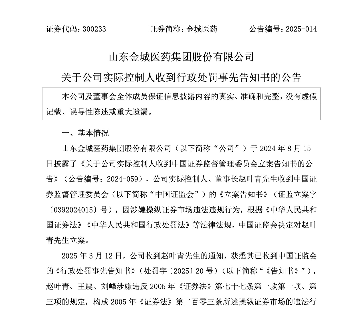 3月12日,金城醫藥公告一則《行政處罰事先告知書》,讓44歲的金城醫藥董事長趙葉青再度站在了輿論的風口。
