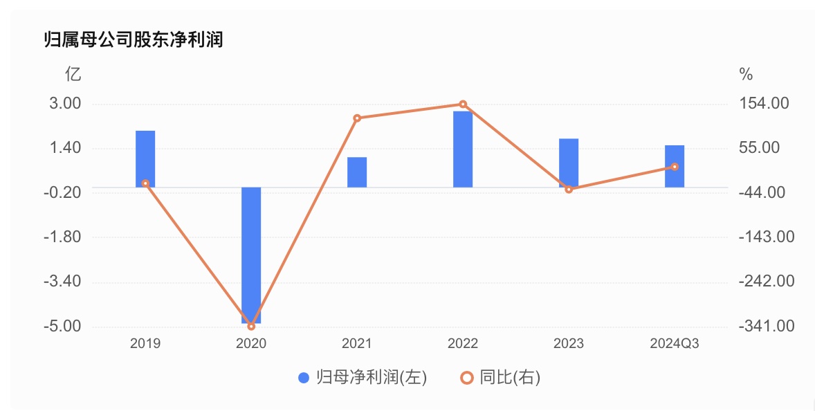 近年來,金城醫藥的業績雖有所突破,但表現並不穩定,從財務數據來看,2024年前三季度,該公司實現營業收入25.15億元,同比微降2.08%,但歸母淨利潤逆勢增長14.02%至1.51億元,扣非淨利潤同比提升15.90%至1.38億元。然而,第三季度單季營收同比下滑12.36%、淨利潤驟降33.5%的疲態,暴露出其增長動能的不穩定性。