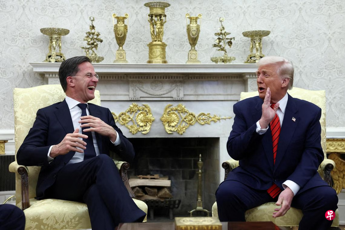 3月13日,北大西洋公約組織秘書長呂特(左)到白宮橢圓形辦公室與美國總統特朗普會談。路透社
