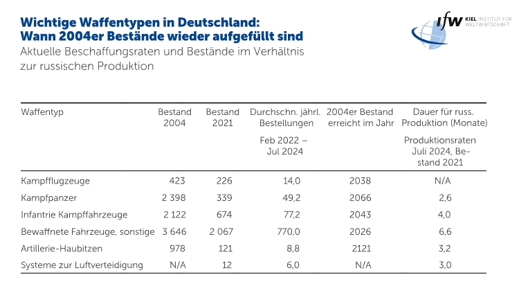根據“基爾世界經濟研究所”(IfW)去年九月發佈的一項研究顯示,如果按照目前的採購速度,德國戰鬥機大約需要15年才能達到2004年的庫存量,坦克大約需要40年,而自行榴彈炮則需要近100年。所以現在德國需要大量的時間重建軍備。