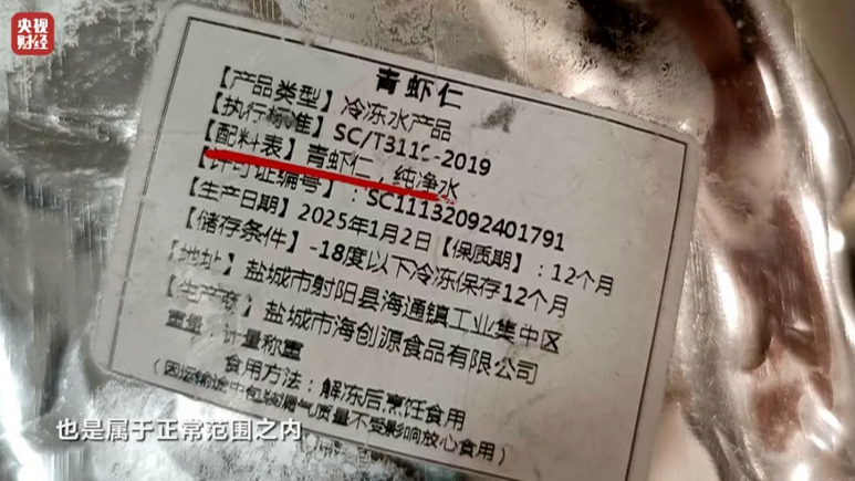 走訪過程中,多家企業告訴記者,儘管蝦仁在加工時添加了保水劑磷酸鹽,但他們的成品外包裝上,並不作標註,成分表僅標明蝦仁和水。