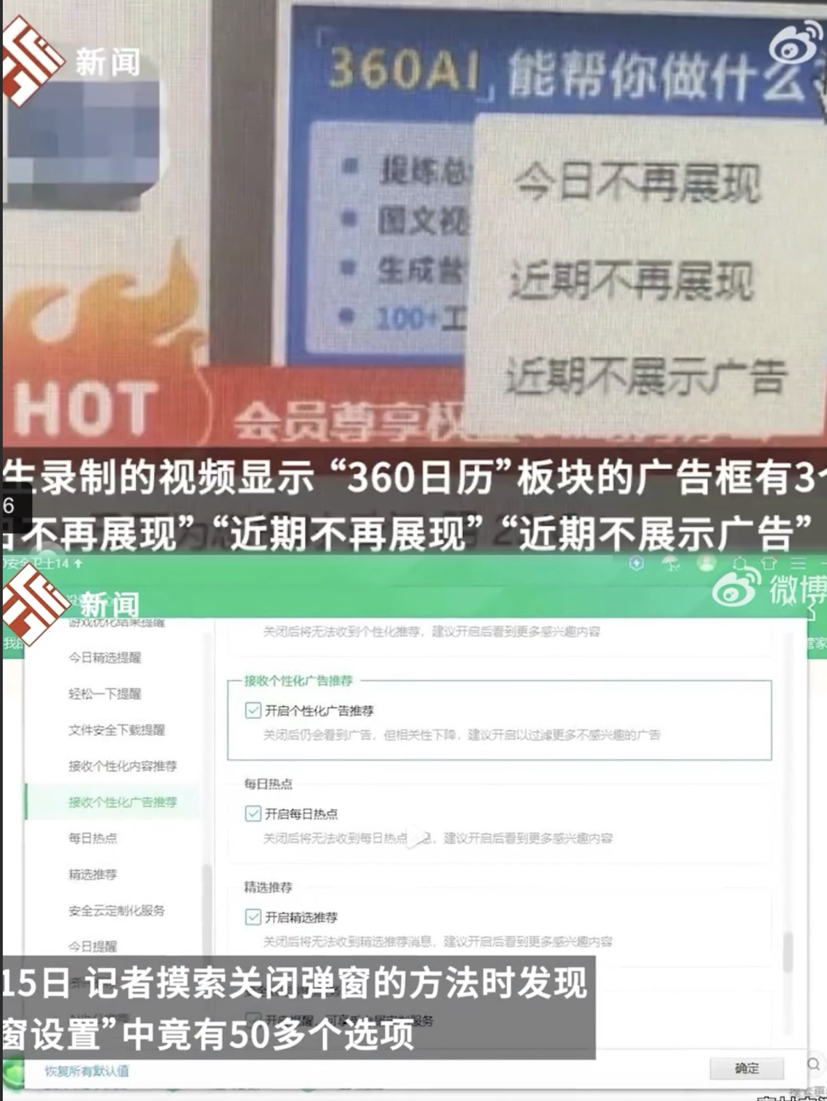 2024年多家媒體報道顯示,用户頻繁投訴360安全衞士廣告彈窗侵擾,即便通過軟件設置關閉彈窗,次日仍會收到推送。有用户實測發現,軟件內彈窗管理選項多達50餘項,涵蓋開機小助手、新聞推送、軟件推薦等模塊,但無一鍵關閉廣告功能,需逐項手動取消勾選,操作繁瑣。一名用户稱:“每次點擊‘今日不再彈窗’後,第二天廣告又‘捲土重來’,彷彿在玩貓鼠遊戲。”