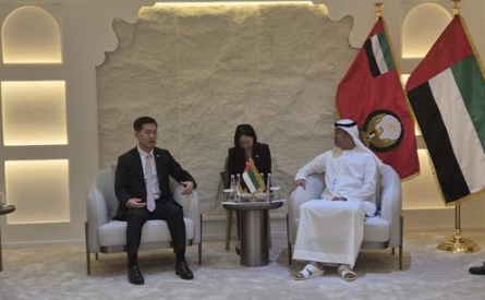 昔鍾健(左)拜會穆罕默德·本·穆巴拉克·本·法迪勒·阿勒馬茲魯伊(右)韓國防衞事業廳