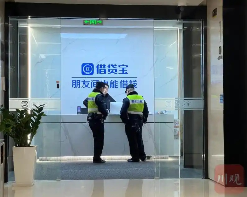 據川觀新聞消息,節目播出後,成都警方已經趕往現場。該媒體記者在抵達成都借寶科技有限公司註冊地後,周邊市民透露,15日晚21時50分左右,已經有10多位警察進入。記者注意到,借貸寶辦公區域目前已經被警方封鎖,裏面有工作人員陸續被警方帶走。