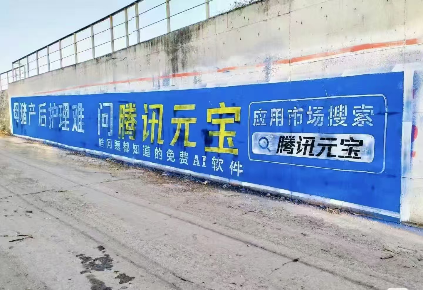 近日,一張圖片引發網友熱議:在某處牆壁上,印刷着“母豬產後護理難,問騰訊元寶”的字樣,下面的一行小字備註道,“啥問題都知道的免費AI軟件。”刷牆內容的右側,還詳細備註了AI軟件的下載方式。3月15日,有接近行業的人士對我們表示,為了方便更多普通人用上AI,確實已經在“刷牆”了。