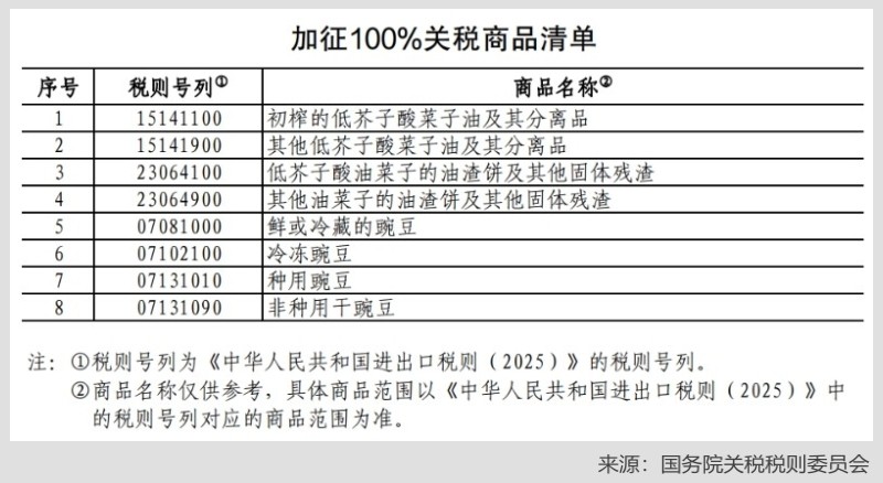 中國政府自2025年3月20日起,將對原產於加拿大的菜籽油、油渣餅和豌豆加徵100%關税,價值超過10億美元,勢必使本已承壓的加拿大油菜籽行業面臨更大挑戰。