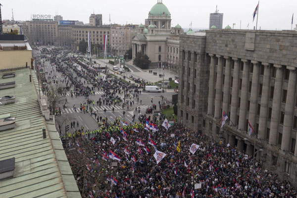 當天發生在貝爾格萊德的抗議活動參與者包括塞爾維亞青年和反對派支持者,示威人潮一度延綿近2公里,佔滿國會周邊街道及貝爾格勒一處行人廣場。