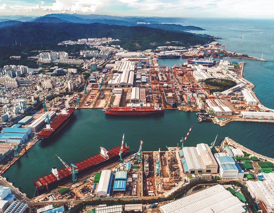 在韓國東南沿岸的蔚山造船廠,船舶正在像樂高積木一樣接受組裝。吊車將大塊的彎折鋼條堆疊在一起,然後利用凹槽將它們拼接成一個無縫的整體。該造船廠的所有者HD現代重工(HHI)嫺熟地掌握着這門技藝。作為全世界最大的造船廠,蔚山每年製造40到50艘現代化船舶,從油輪到驅逐艦,應有盡有。蔚山這樣的造船廠已經成為美國和中國在印太地區重要領域競爭的關鍵一環。