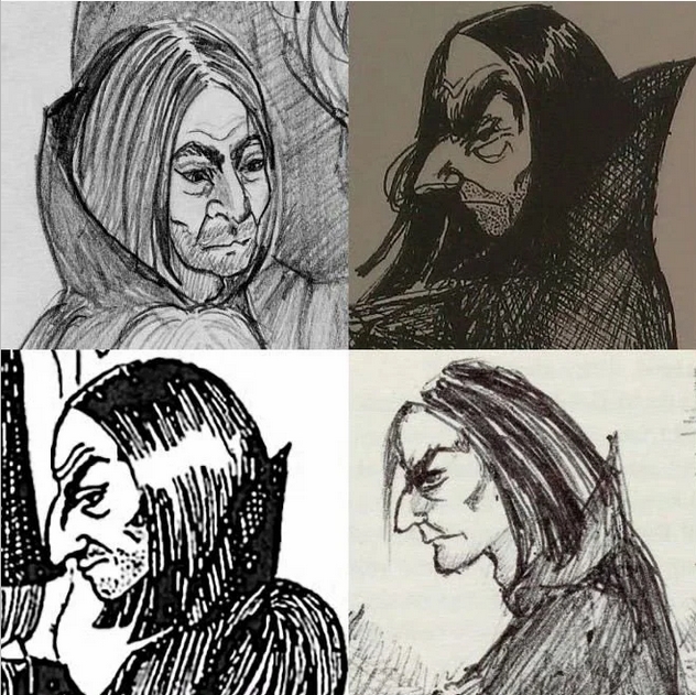 J.K.羅琳此前也繪製過一些斯內普畫像,鷹鈎鼻是角色標誌性特徵。