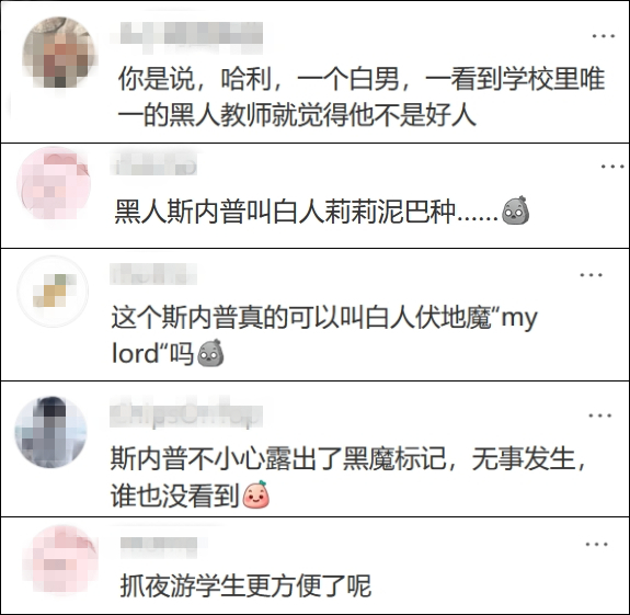 斯內普因為麻瓜和巫師的“混血”身份受到嘲笑,再想想他離羣索居的性格以及大多數人對他的誤解,哈利·波特第一眼就覺得一個黑人老師“不是好人”?這下魔法世界每個人看起來都像“種族主義者”了。
