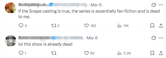 消息一出,X平台上,已經有網民開始抵制HBO劇版《哈利·波特》。
