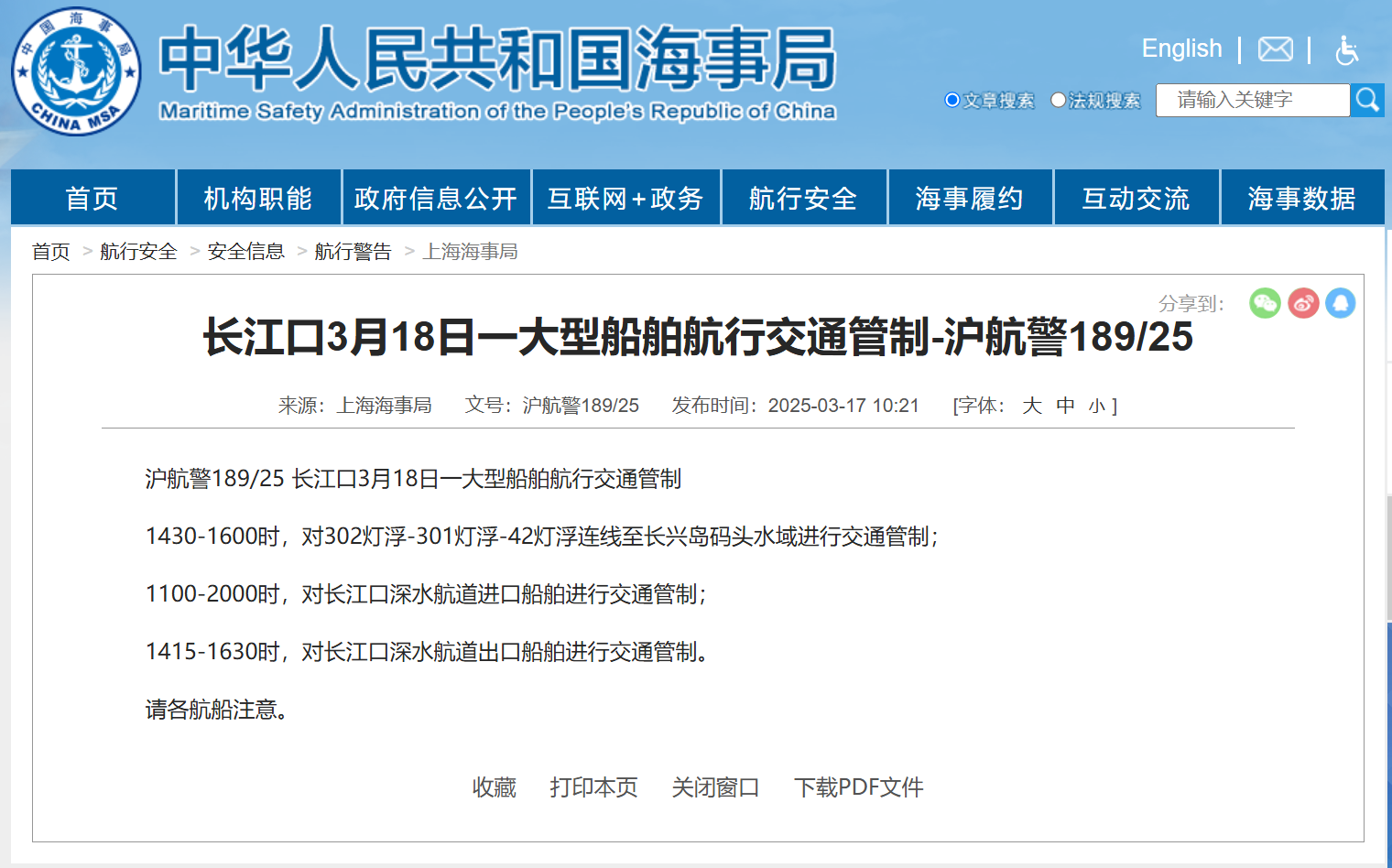 中國海事局網站截圖