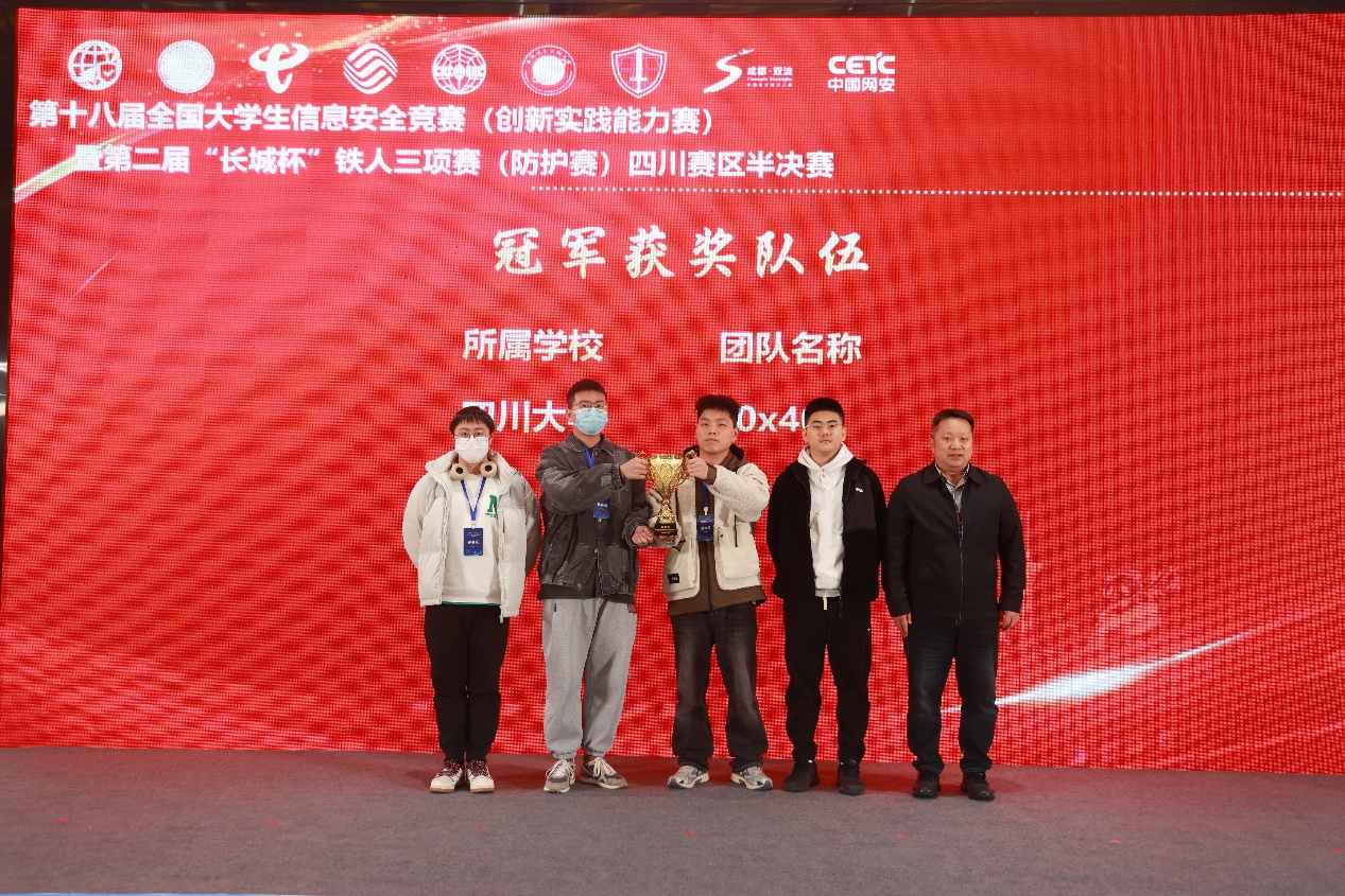 四川賽區半決賽在成都信息工程大學雙流新型產業學院舉行,由成都信息工程大學、四川省網絡空間安全協會承辦,成都市雙流區人民政府、中國電信股份有限公司四川分公司、中國電子科技網絡信息安全有限公司協辦。中國信息安全測評中心領導石竑松、成都信息工程大學黨委書記沈火明、北京電子科技學院副校長謝四江、中共四川省委網絡安全和信息化委員會辦公室總工程師何力等出席四川賽區半決賽啓動儀式。來自四川大學、西南石油大學(南充校區)、國防科技大學的隊伍取得四川賽區半決賽前三名。