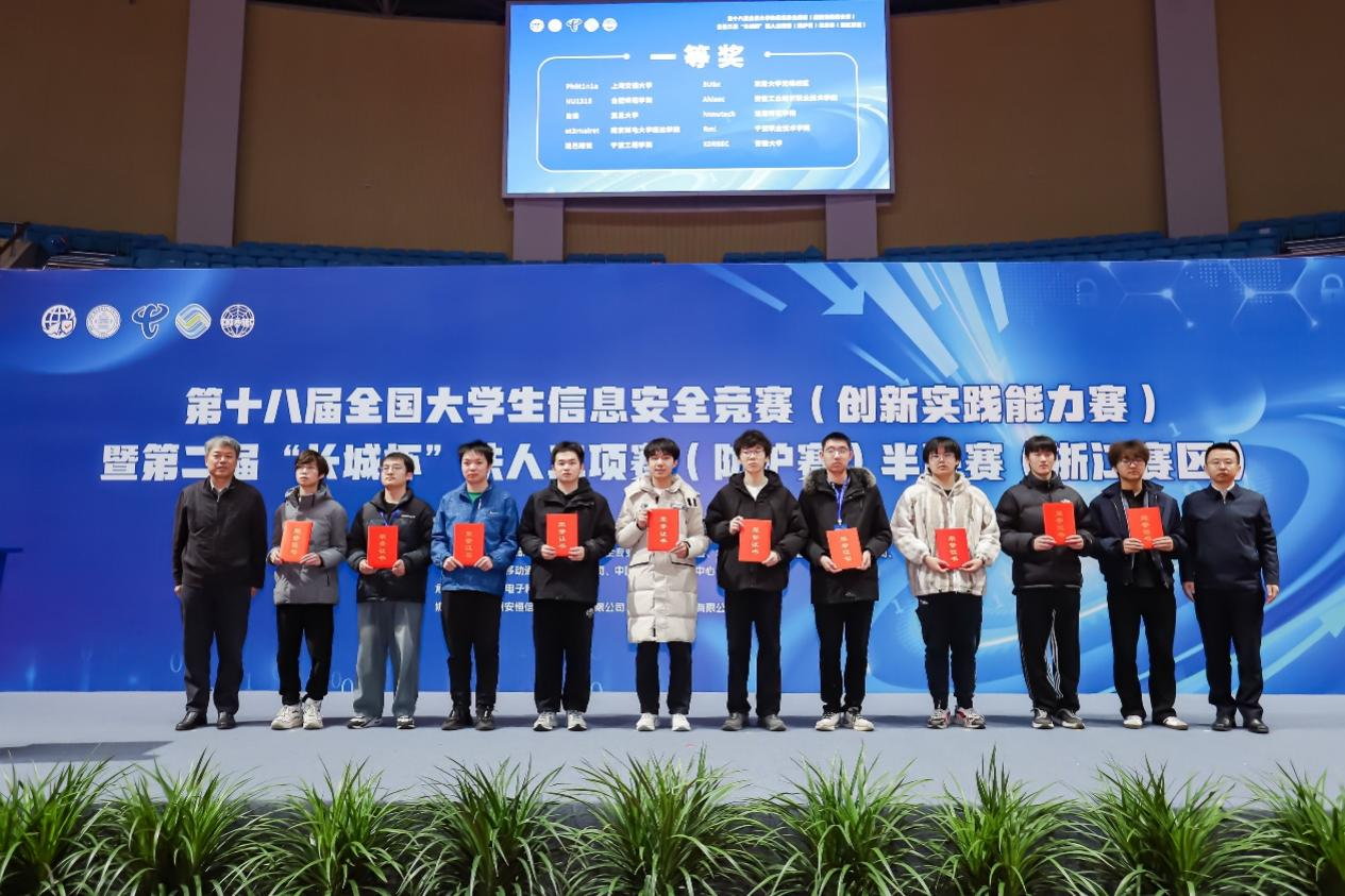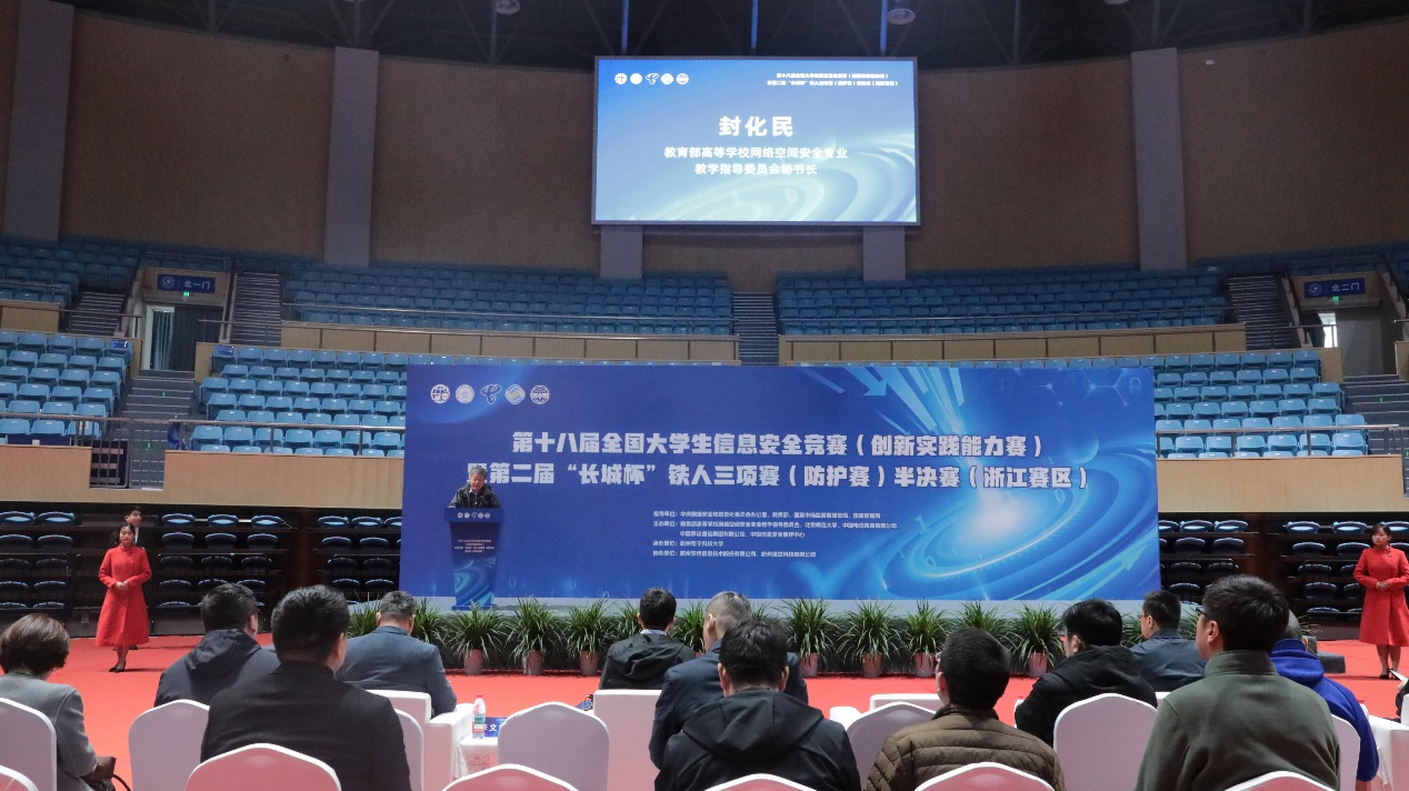 浙江賽區半決賽在杭州電子科技大學舉行,由杭州電子科技大學承辦,杭州安恆信息技術股份有限公司、杭州凌武科技有限公司協辦。教育部高等學校網絡空間安全專業教學指導委員會秘書長封化民、中國信息安全測評中心副主任張濤、杭州電子科技大學副校長李文鈞等出席浙江賽區半決賽啓動儀式。國家市場監督管理總局和國家數據局也派代表參加當天的活動。來自上海交通大學、合肥師範學院、復旦大學的隊伍取得浙江賽區半決賽前三名。