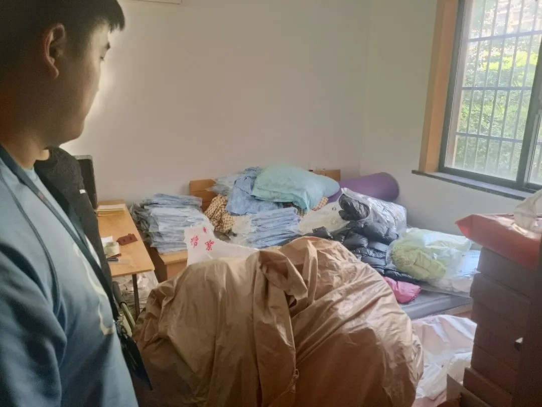 警方破獲“冒充快遞員銷售假冒知名品牌蠶絲被案”,查獲涉案物品