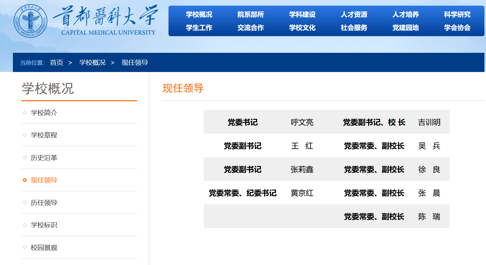 觀察者網18日查詢發現,首都醫科大學網站“現任領導”一欄顯示,吉訓明現任首都醫科大學黨委副書記、校長,饒毅已卸任。