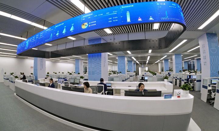 顯示各類熱線數據的熱線值班台 資料圖:新華社