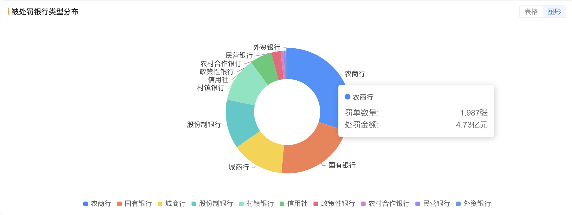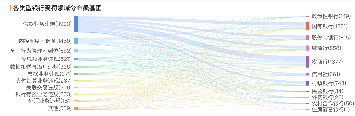 從罰單數量維度剖析,農商行以 1987 張罰單佔總罰單數量的近三分之一;城商行亦未能倖免,合計收到916張罰單。相較而言,國有六大行罰單總量雖超千張,但分散於龐大的分支機構網絡,單家受罰密度遠低於中小銀行。