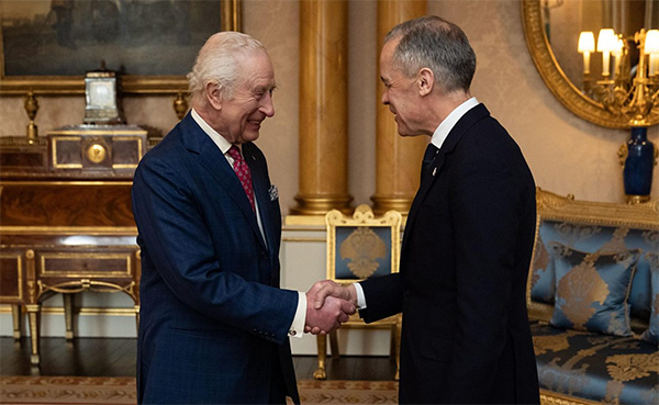 英國國王查爾斯三世與加拿大總理馬克·卡尼會面。 視頻截圖