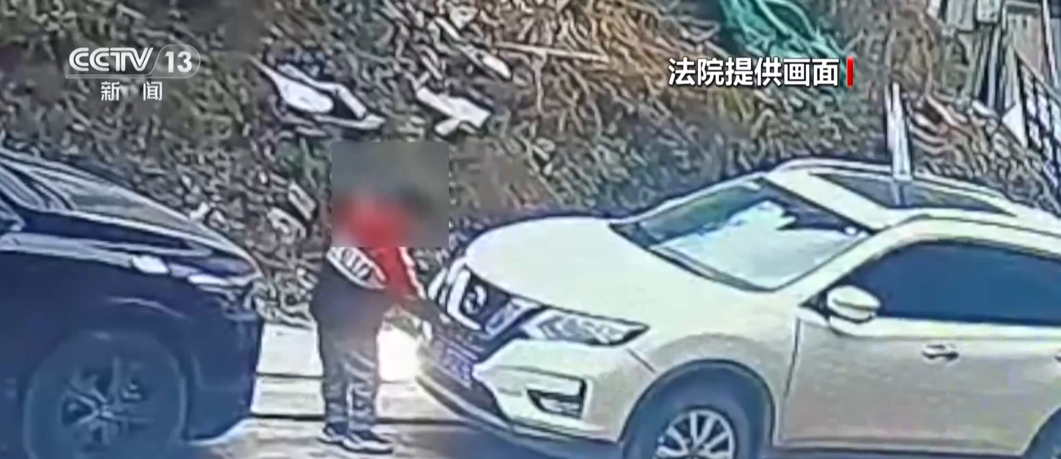 **桑植縣人民法院瑞塔鋪人民法庭庭長梁婷:**這是原告在本案中所提交的一份視頻資料,視頻中這輛白色的小車就是原告甄某某的受損車輛,這位走向車輛的這個小孩兒就是被告劉某的孩子劉某某。可以從視頻中看到,劉某某在走向受損車輛的途中,手中就一直有點和丟的動作。在他走到原告車輛的前部,可以看到他明顯有往原告車輛裏面丟放東西的一個動作。