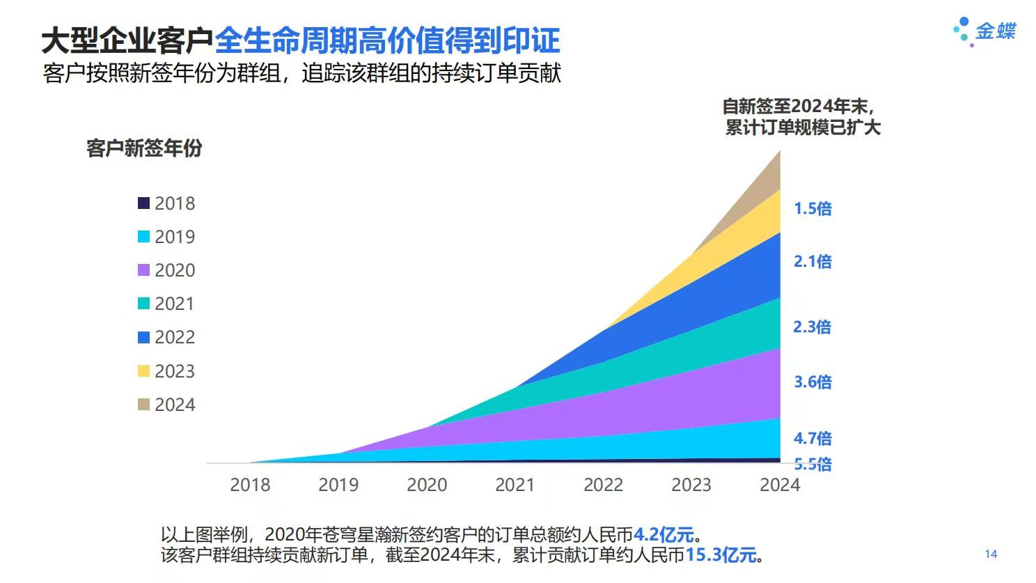 管理層介紹稱,報告期內,金蝶緊抓大型企業加速國產化替代及行業化的機遇,在央企、國企及500強企業領域取得顯著進展,高端製造行業實現合同簽約金額翻倍增長,消費行業合同簽約金額同比增長達56%,成功簽約和中標多家行業領軍企業,如中國石油天然氣集團、中國電子、中國航空集團、電裝中國、希音國際、青島啤酒、傳音控股等。