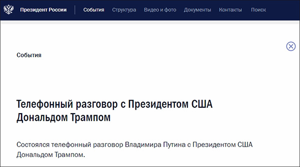 在通話中,雙方表達了在俄美對世界安全與穩定負有特殊責任的背景下實現雙邊關係正常化的共同意願。雙方討論了一系列旨在推動未來經濟與能源領域互利合作的想法。