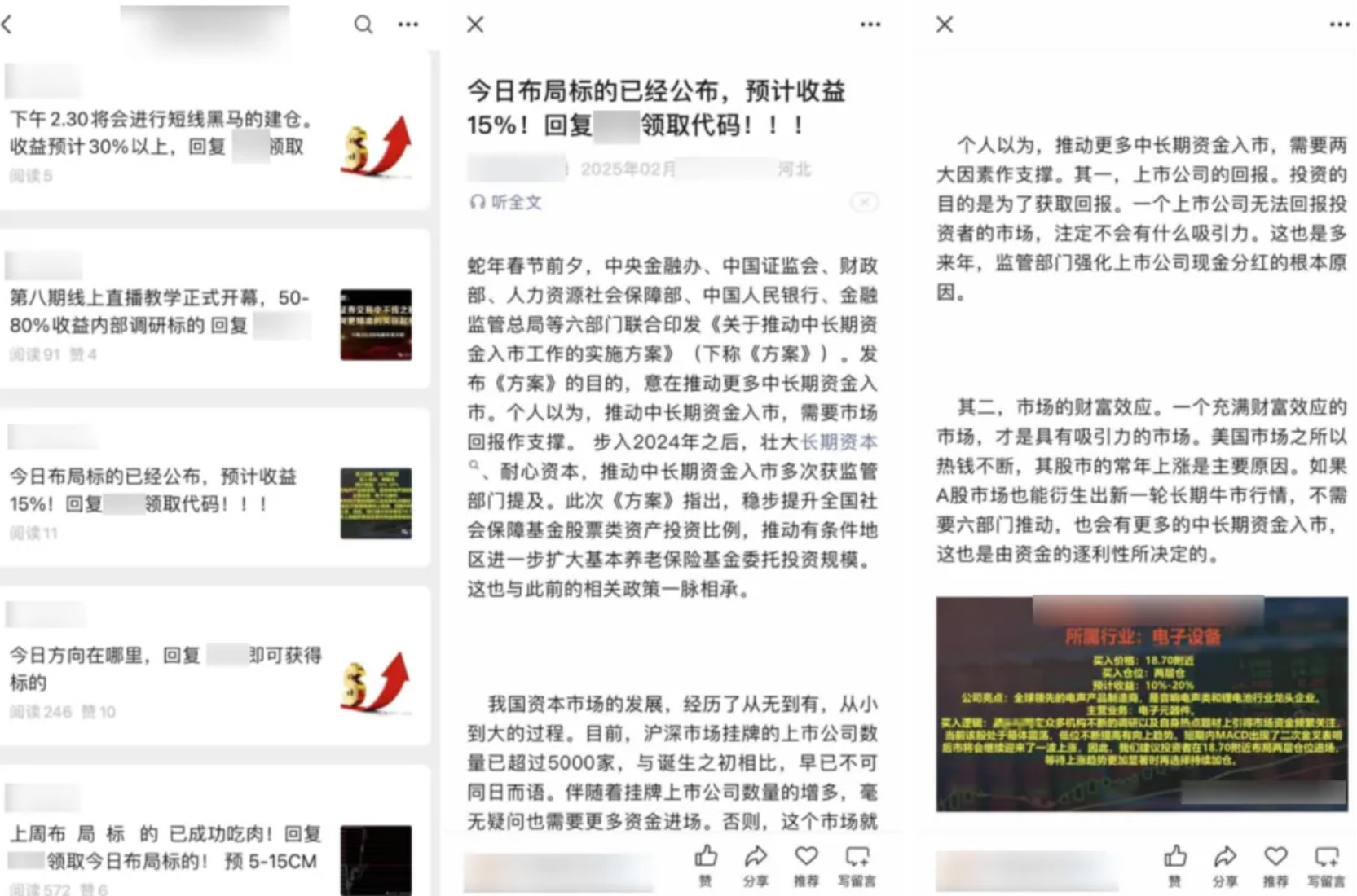微信公眾平台一直致力於為用户提供文明健康、規範有序的網絡環境,平台倡導證券公司、證券投資諮詢機構、具備專業資質的財經和證券類專家等專業人士發佈信息豐富、權威真實的證券股票類相關內容。同時,平台發現部分運營者在自身不具備專業資質為他人提供薦股服務,或編造和傳播虛假信息,誘導用户進行投資及實施詐騙的行為。這些行為違反國家相關法律法規及平台規則,擾亂市場秩序,對平台用户的利益造成損害。