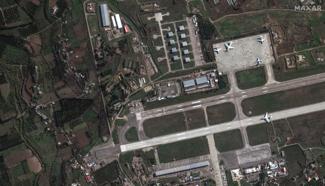 2024年12月13日,衞星圖像拍攝到俄軍正從敍利亞的赫梅米姆基地裝卸軍事裝備。 圖源:路透社