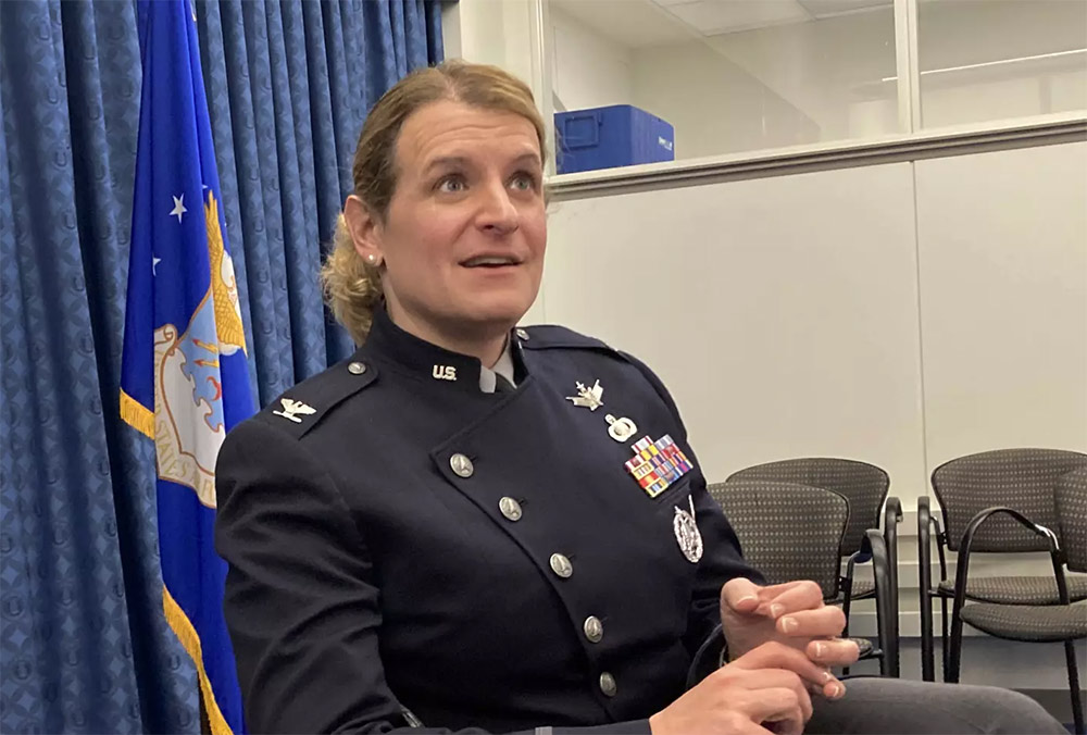 一名美國跨性別者空軍軍官接受採訪。 《洛杉磯時報》