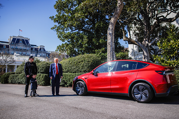 當地時間3月11日,特朗普買下了一輛紅色特斯拉以示對馬斯克的支持。 視覺中國