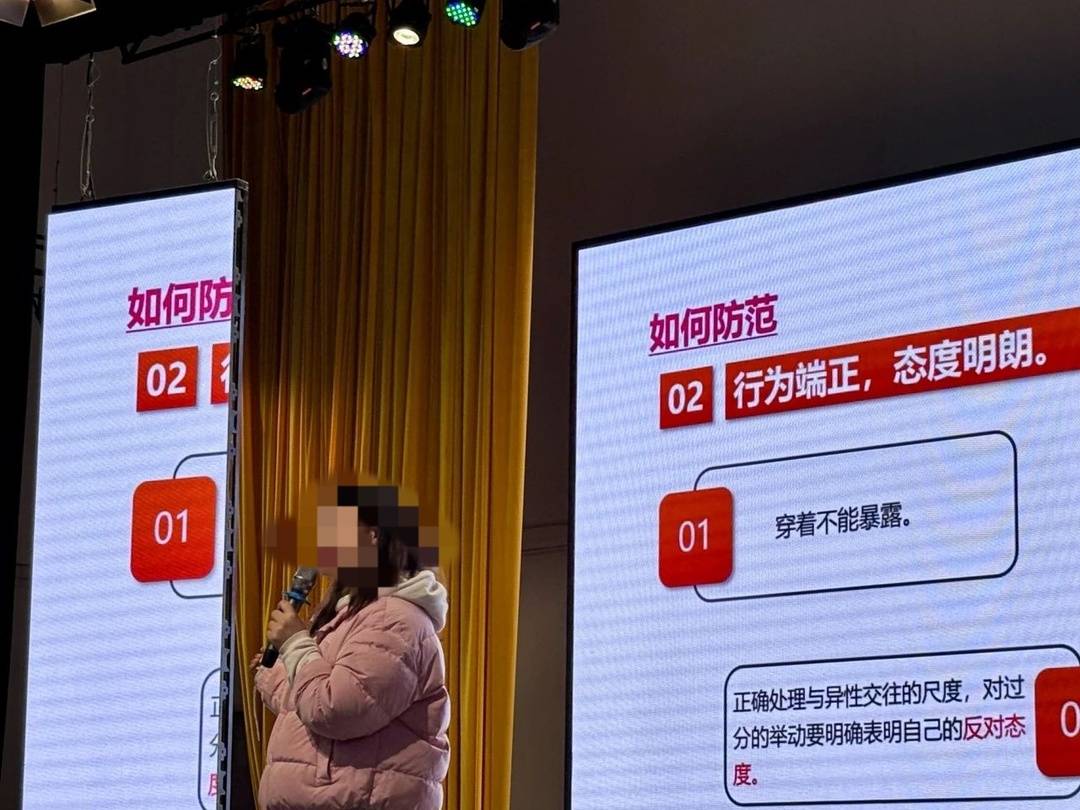 “3月15號學校在晚自習第一節的時候,給女生單獨開了一個講座,本以為是來講述一些關於女性方面的東西,但是演講者的言論過於偏激和攻擊。”該帖提到,包括“女孩子愛打扮就是吸引男生的注意,追求一些個性化的東西就是降低自己身價”等。