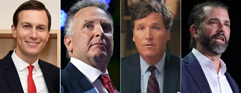 從左至右:賈裏德·庫什納、史蒂夫·威特科夫、塔克·卡爾森和小唐納德·特朗普