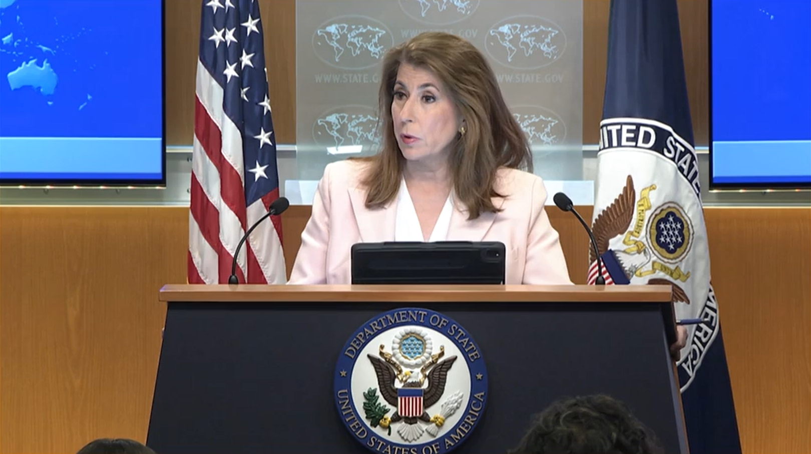 據俄羅斯衞星通訊社報道,當地時間3月19日,美國國務院發言人塔米·布魯斯表示,美國政府高級官員將前往沙特阿拉伯,是否會舉行美俄烏三國代表會晤尚未確定。