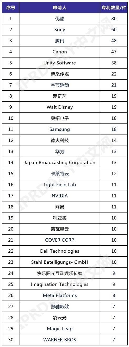 全球虛擬拍攝技術發明專利排行榜TOP30 IPRdaily