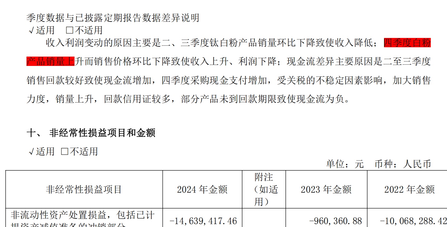 值得注意的是,魯北化工在年報描述收益變動時,將公司核心產品“鈦白粉”誤寫成了“白粉”,鈦白粉與俗稱毒品的"白粉"存在本質區別,該筆誤可能導致市場誤讀。