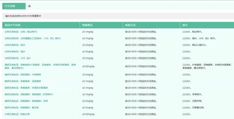 大家日常吃的大米、新鮮蔬菜等的鎘限量要求多為≤0.1mg/kg或者≤0.2mg/kg。