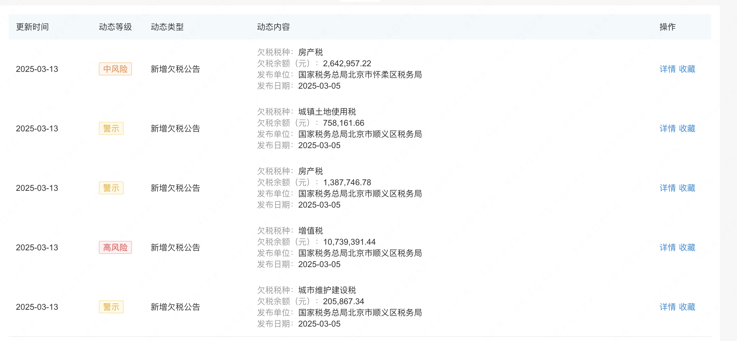 近日,北京匯源飲料食品集團有限公司(以下簡稱“匯源集團”)新增5條欠税公告,欠税餘額合計達到1573萬餘元。據企查查App顯示,欠税税種包括增值税、城市維護建設税、房產税、城鎮土地使用税。
