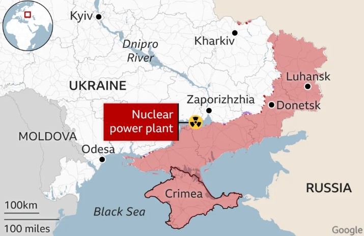 自2022年3月,扎波羅熱核電站一直處於俄羅斯控制之下 BBC於2024年8月製圖