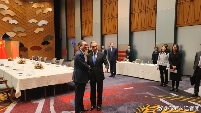 王毅會見韓國外長趙兑烈 guancha 2025-03-21 當地時間3月21日,中共中央政治局委員、外交部長王毅在東京會見韓國外長趙兑烈。3月22日,王毅將出席第11次中日韓外長會。 (CGTN海外報道員Shane Hahm)