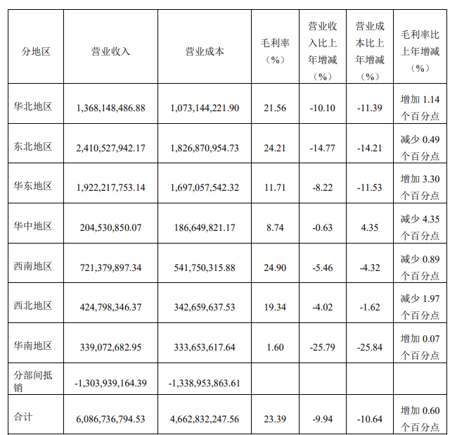 按區域市場來看,桃李麪包在各地區市場也都錄得收入的下降,其中華南地區下降速度最高為25.79%,其次是桃李麪包的“大本營”東北市場,較同期下降了14.77%,接着是華北和華東地區,分別下降了10.10%和8.22%。