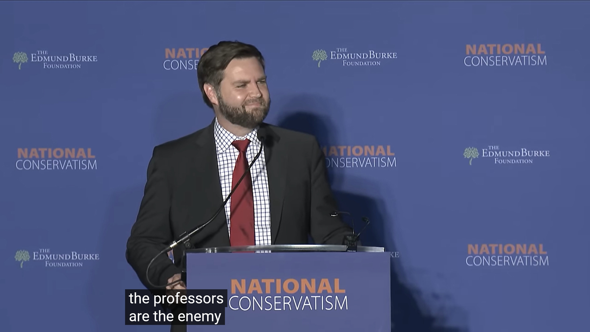 2021年11月,萬斯出席美國全國保守主義會議時引用尼克松説“教授是敵人”,台下掌聲雷動 截圖