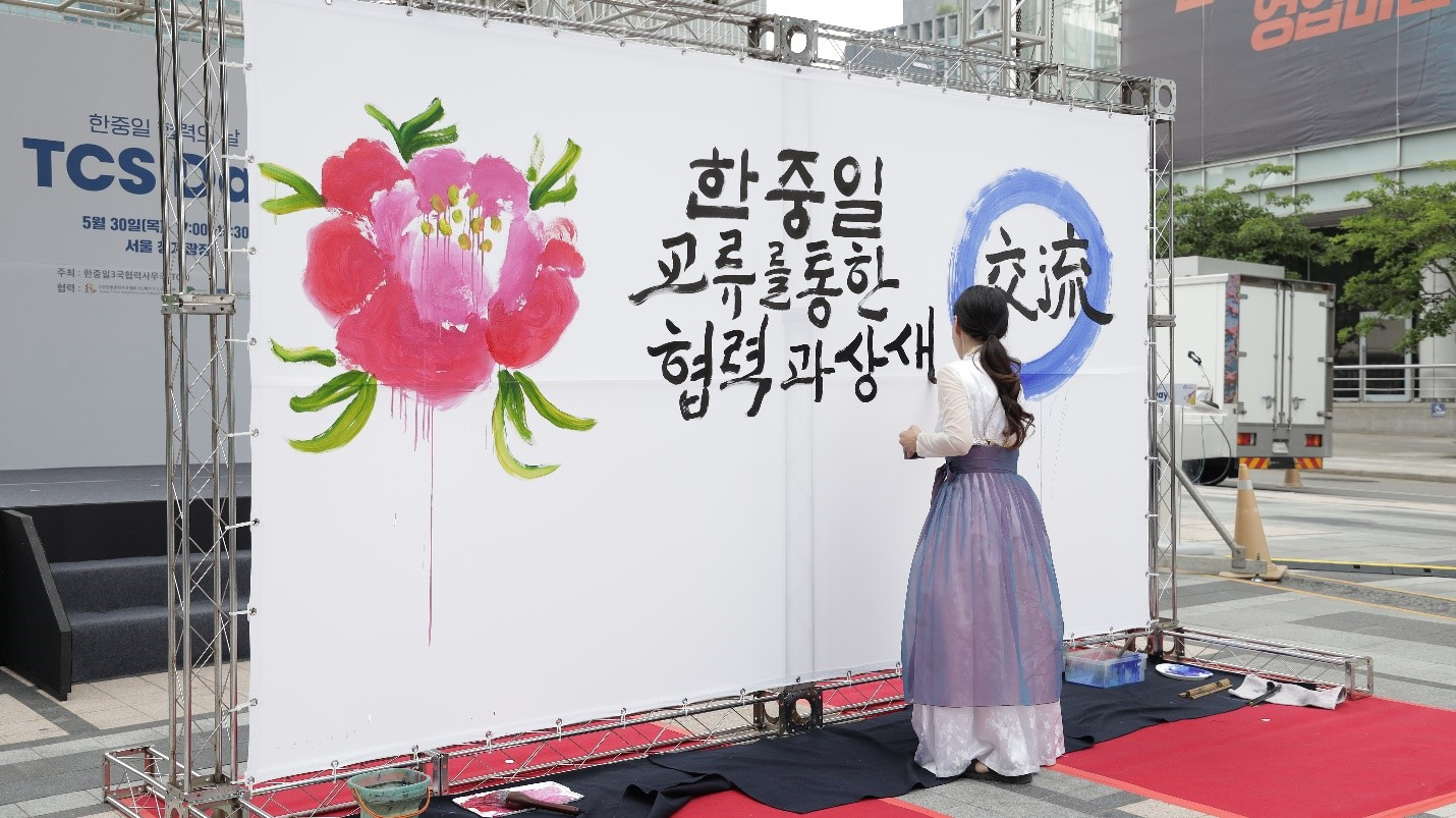 2024年中日韓精神漢字詞“交流”書法表演中日韓三國秘書處