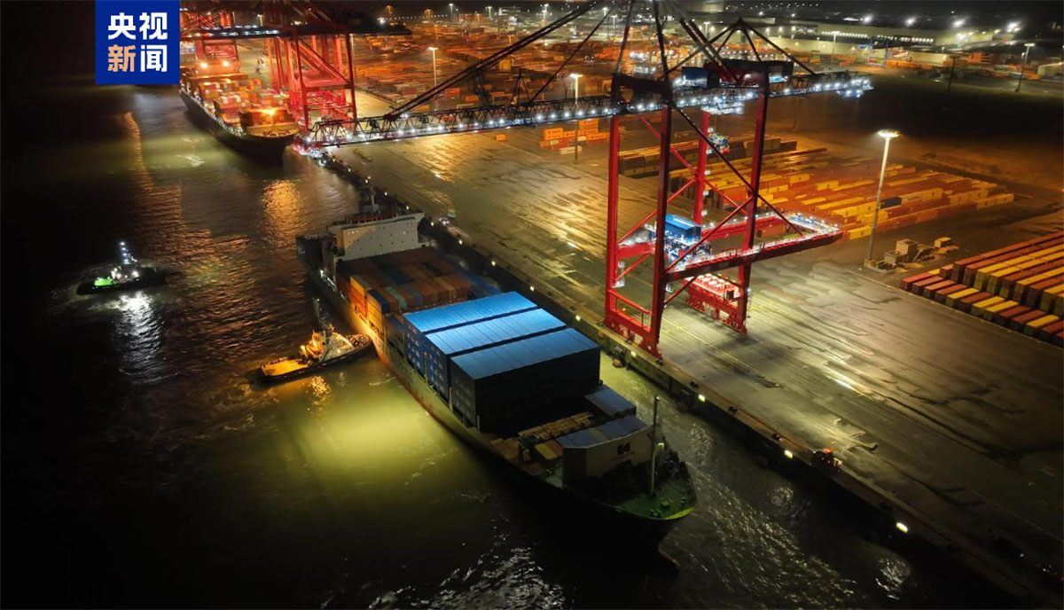 當地時間1月24日,“中歐快航”接船儀式在德國北部威廉港物流園區舉行,標誌着連通中國長三角地區與德國唯一深水港的“中歐快航”直達航線成功完成首航。 央視新聞視頻截圖