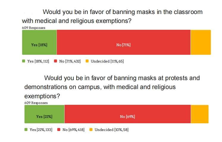 然而,在校方宣佈口罩禁令前,哥大國際公共事務學院學生會曾對該院學生做過民意調查。觀察者網看到的民調結果顯示,高達71%的學生反對在教室禁止戴口罩,高達69%的學生反對在抗議活動中禁止戴口罩。
