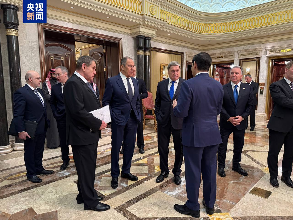 2月18日,俄羅斯和美國代表團在沙特阿拉伯首都利雅得舉行會談。 央視新聞