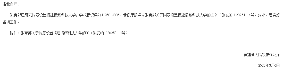 設置福建福耀科技大學的通知